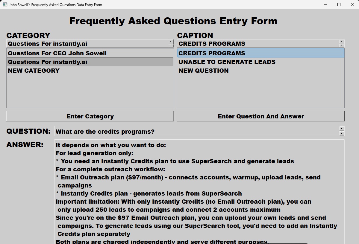 This screen is where the user can enter and modify questions and answers.
