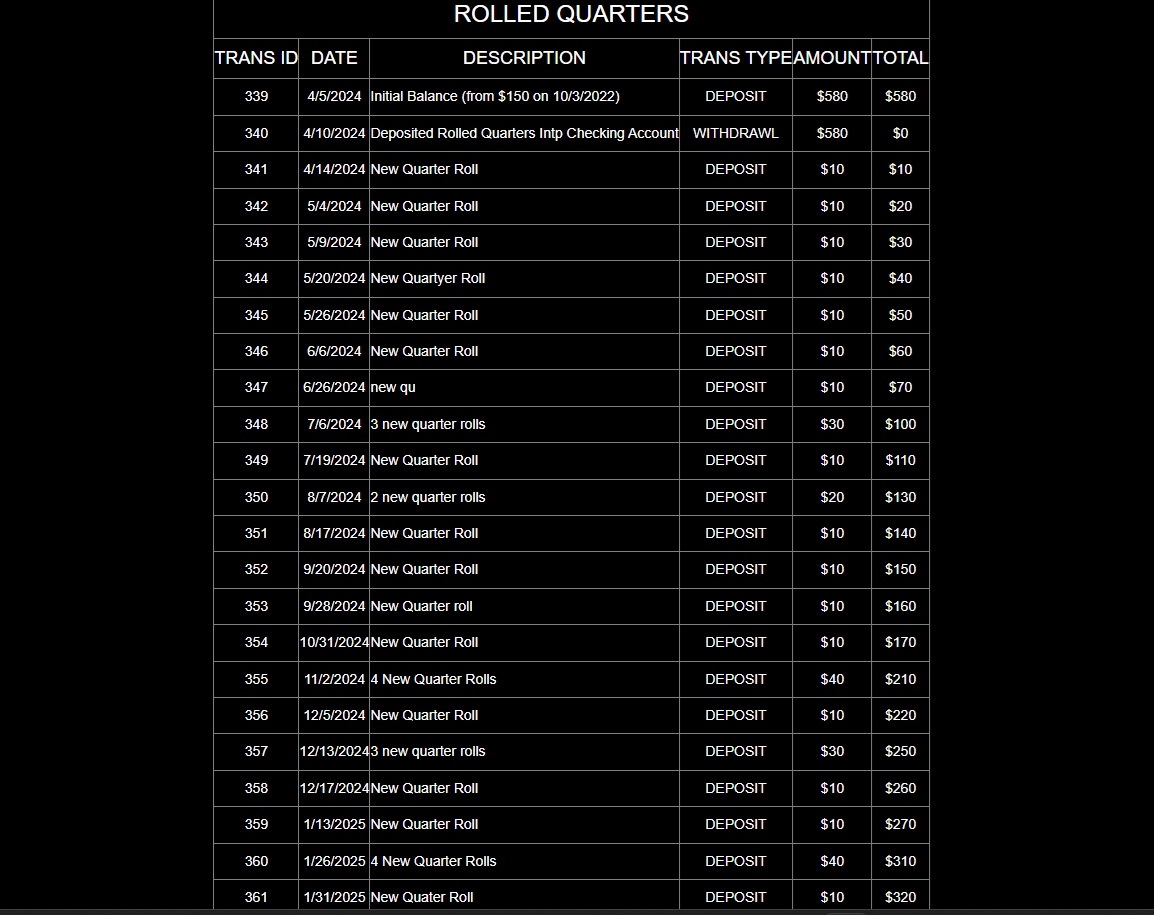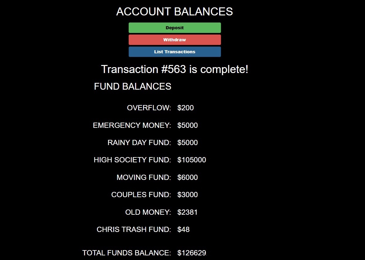 Clicking List Transactions from the Options Menu, lists each transaction by fund/account in chronological order, with running balances.